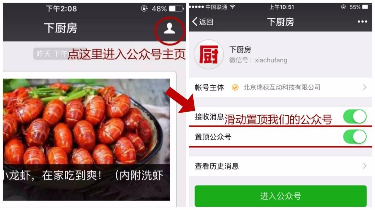 告诉大家一个快速增长厨艺的小窍门:置顶我们的公众号,这样第一眼就可以看到最新的内容啦!快进入下厨房公众号主页完成置顶吧~