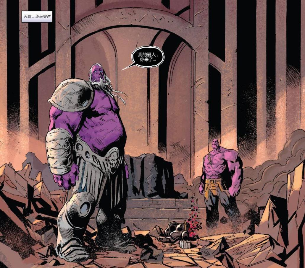 身为骄傲好战的泰坦族,灭霸是不可能自杀的,于是他用时间宝石找到了过去的自己,并让过去的自己结束自己的生命,过去的灭霸一开始也是同意的,毕竟这是对自己心爱的死亡女神表达爱意。可在战斗过程中,过去的灭霸幡然醒悟,他不想再被死亡女神蛊惑,被死亡女神控制,于是他中止了这场战斗,回到了自己的时间线,抹除了那个“痴情的灭霸”。