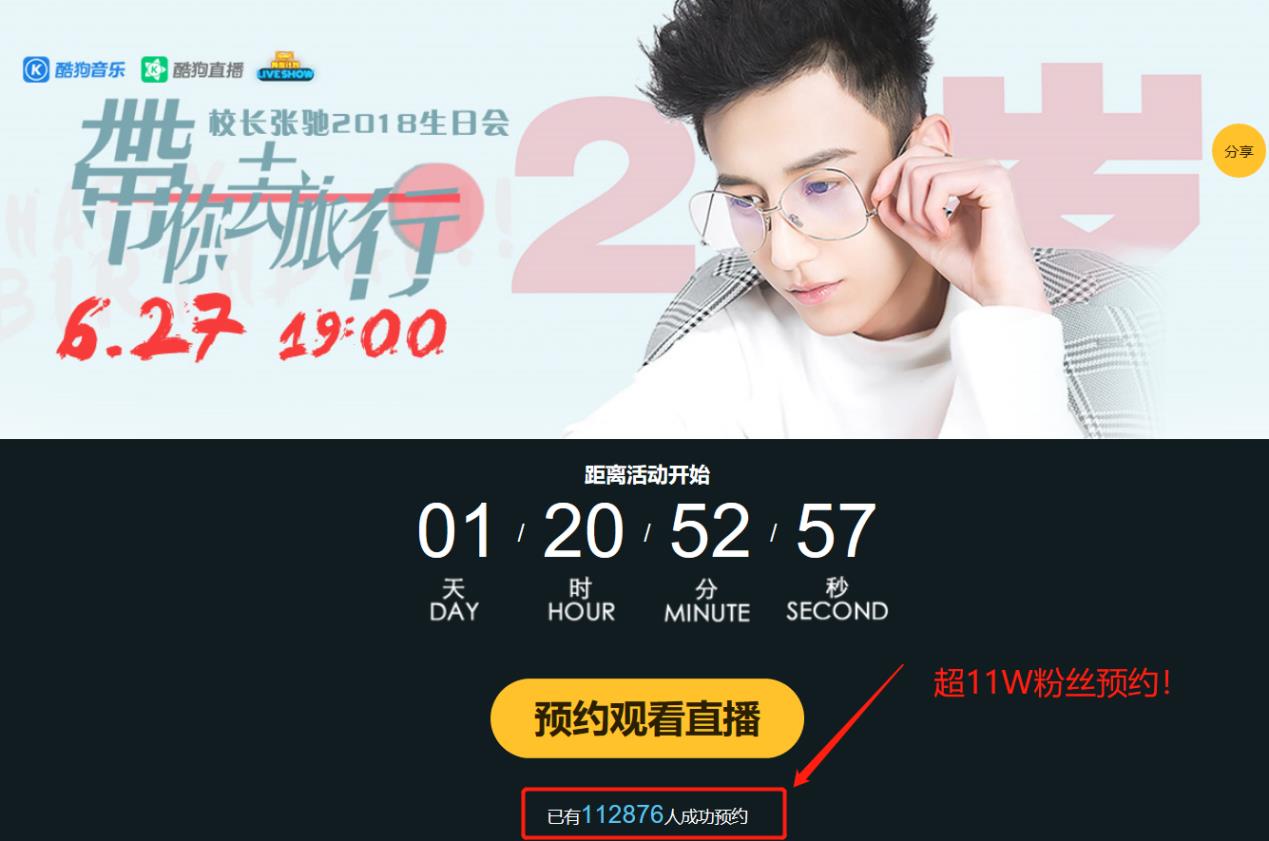 有颜值、有实力,还特别暖,就是这样一个校长张驰,即将在酷狗直播开启生日首秀!时光飞逝,当年的青涩少年即将20岁了,但属于他的音乐故事才刚刚开始。曾一心想着《带你去旅行》,如今,即将迈入20岁门槛的校长张驰,只想安静下来与无数粉丝共同度过一个温暖的夜晚、安心地过一个生日。酷狗直播将全程进行跟踪,在距离直播开始还有1天多的时间里,就已经有11W+粉丝在线预约,期待与偶像一起过生日、见证偶像的成长时刻!