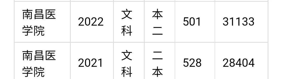 南昌医学院,是一所所比较新的公办本科高校,2021年与2022在江西省内招生录取分数线如下: