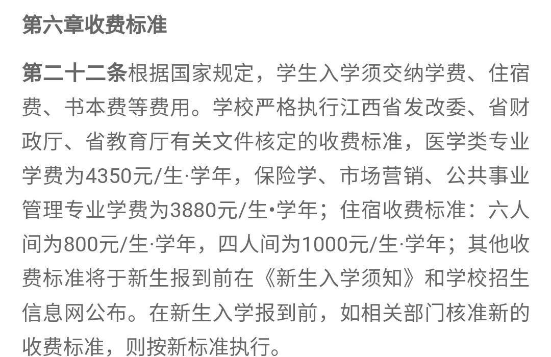 从赣南医学院2023年招生章程悉知,学校将严格执行江西省发改委、江西省财政厅、省教育厅有关文件核定收费标准 具体如下面截图: