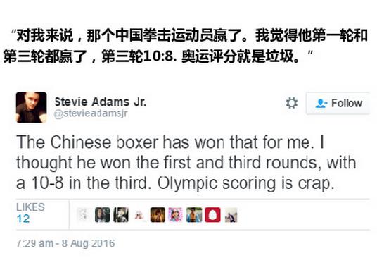 比赛结果一出,许多人都感到惋惜甚至愤怒。在看到中国选手流泪的一瞬间,虽然身为一个拳击方面的小白,小编心里也非常不是滋味。这是明显的黑哨。