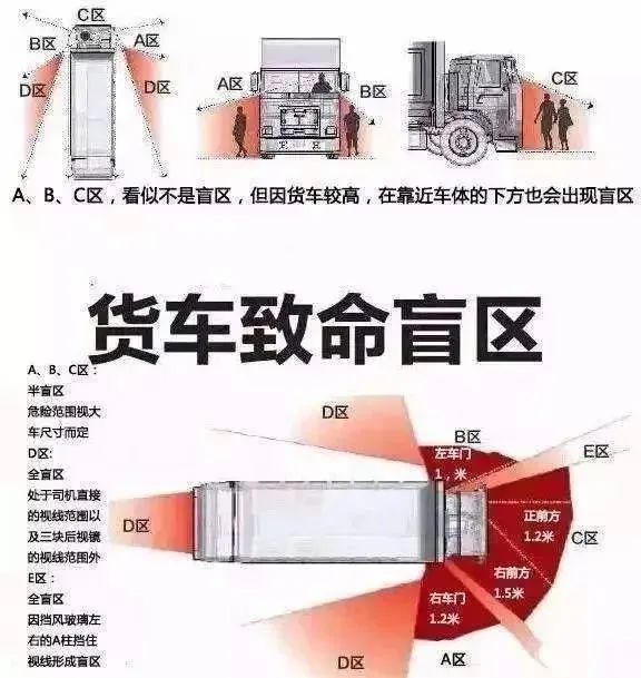 大型车辆转弯时,内侧有2米左右的危险区域,一定要远离这个区域。如果紧贴大型车车身骑车,那么车辆在右转弯时就极易将骑车人刮倒,其右后轮还可能从人身上碾压而过,非常危险。