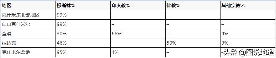 克什米尔各地区宗教分布情况