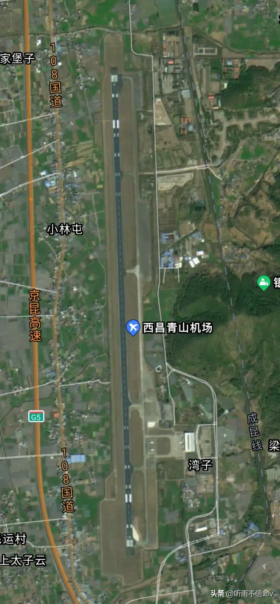 为4D军民合用机场,海拔1562米,位于凉山州西昌市,前身为1975年通航的西昌锅盖梁机场,1997年改名为西昌青山机场。