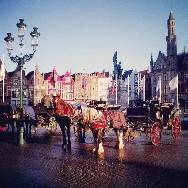 42. 在比利时布鲁日乘坐马车走在风景如画的街道,享受古典的欧洲风情。