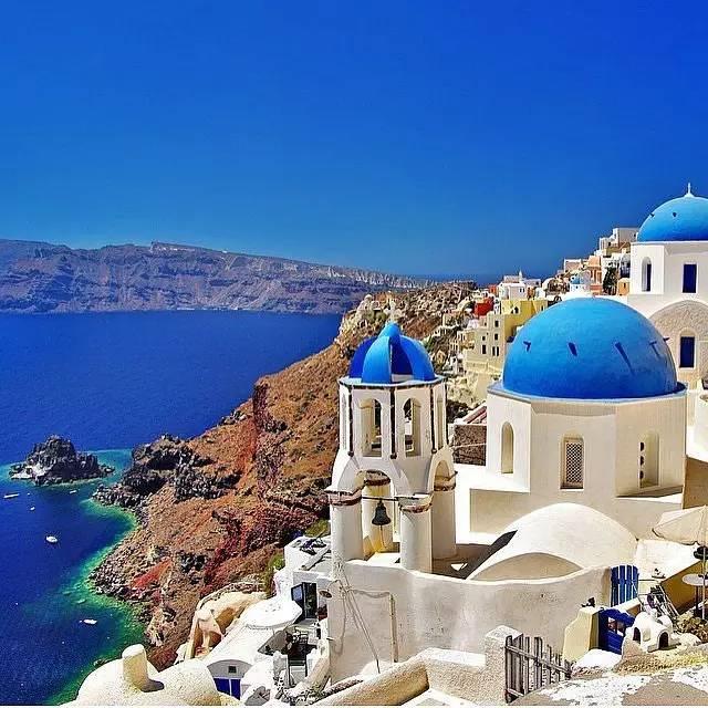 38. 在希腊圣托里尼欣赏蓝色的海岸风光