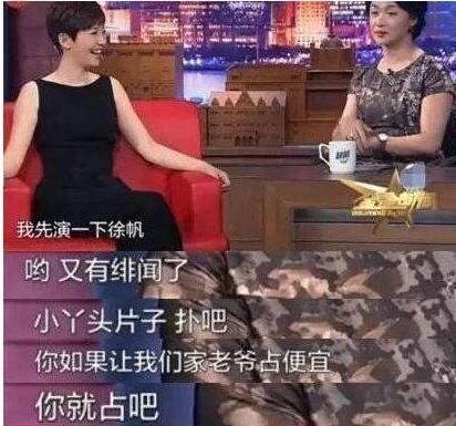 最后徐帆甚至在节目上表示说:“现在娱乐圈儿中的小姑娘真的是一个个都会往上扑,就和疯了一样,一浪接一浪的,我能有什么办法呢,反正我家男人又不吃亏”