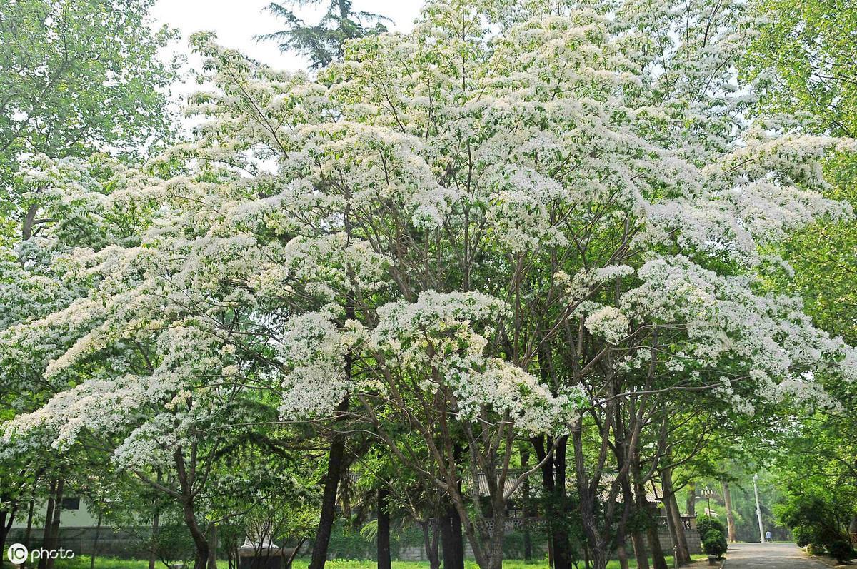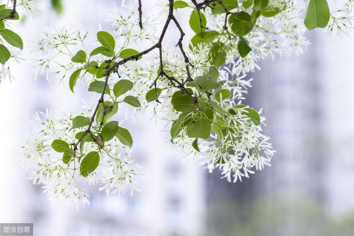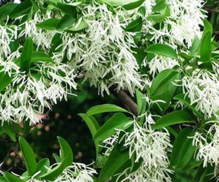 流苏树枝茂叶盛,春夏满树花开雪白,花瓣狭长线状。形如流苏,十分的漂亮,所以很适合种在建筑物的四周或是园林之中,也可以选取老桩制作树桩盆景,放在阳台和室内供观赏。