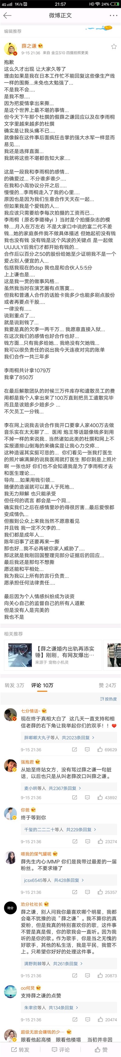 今天薛之谦终于做出了回应。