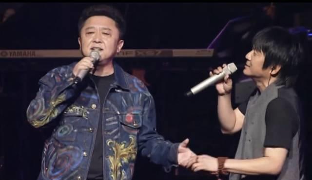 2014年青岛栾树演唱会,于谦跟老友栾树演唱了摇滚+说唱的《怎么办》