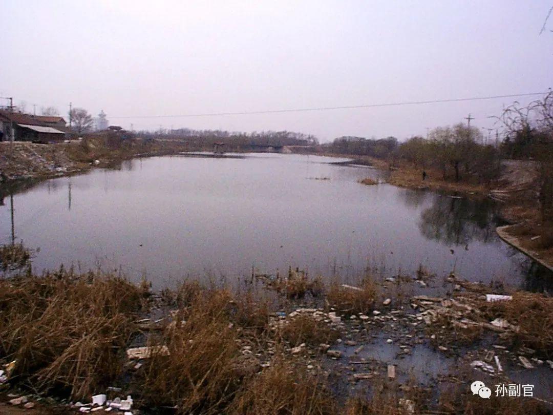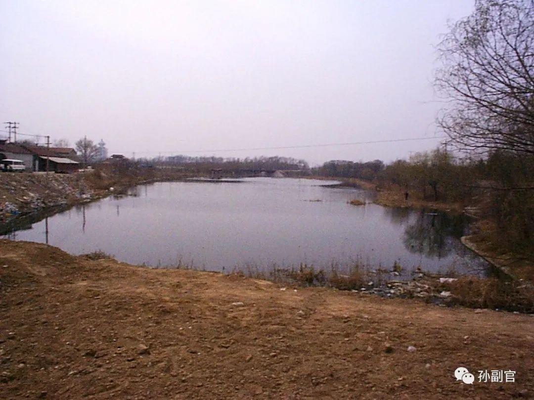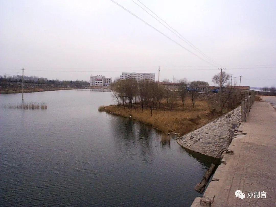 桥东的水面,远处的楼是蒲城建筑公司的宿舍和京滨实业公司的楼,前面的平房就是船队院子