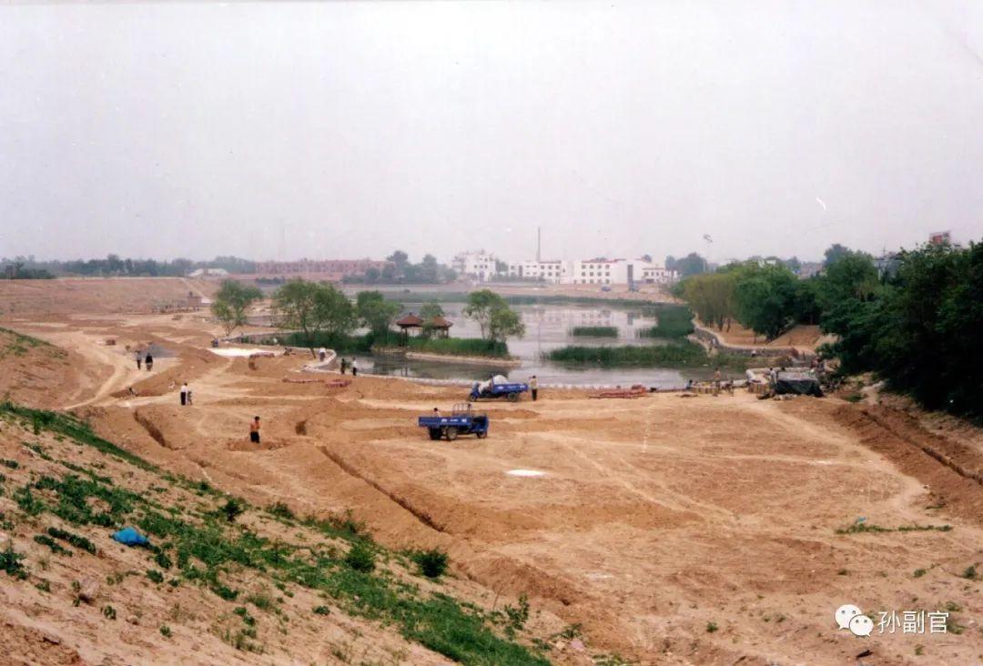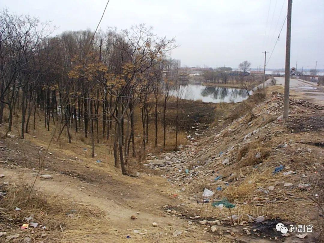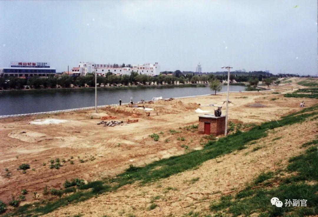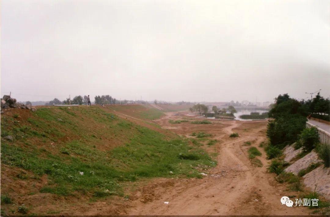 水面与老坝之间是一片片的荒草,后来建成了绿地和广场。