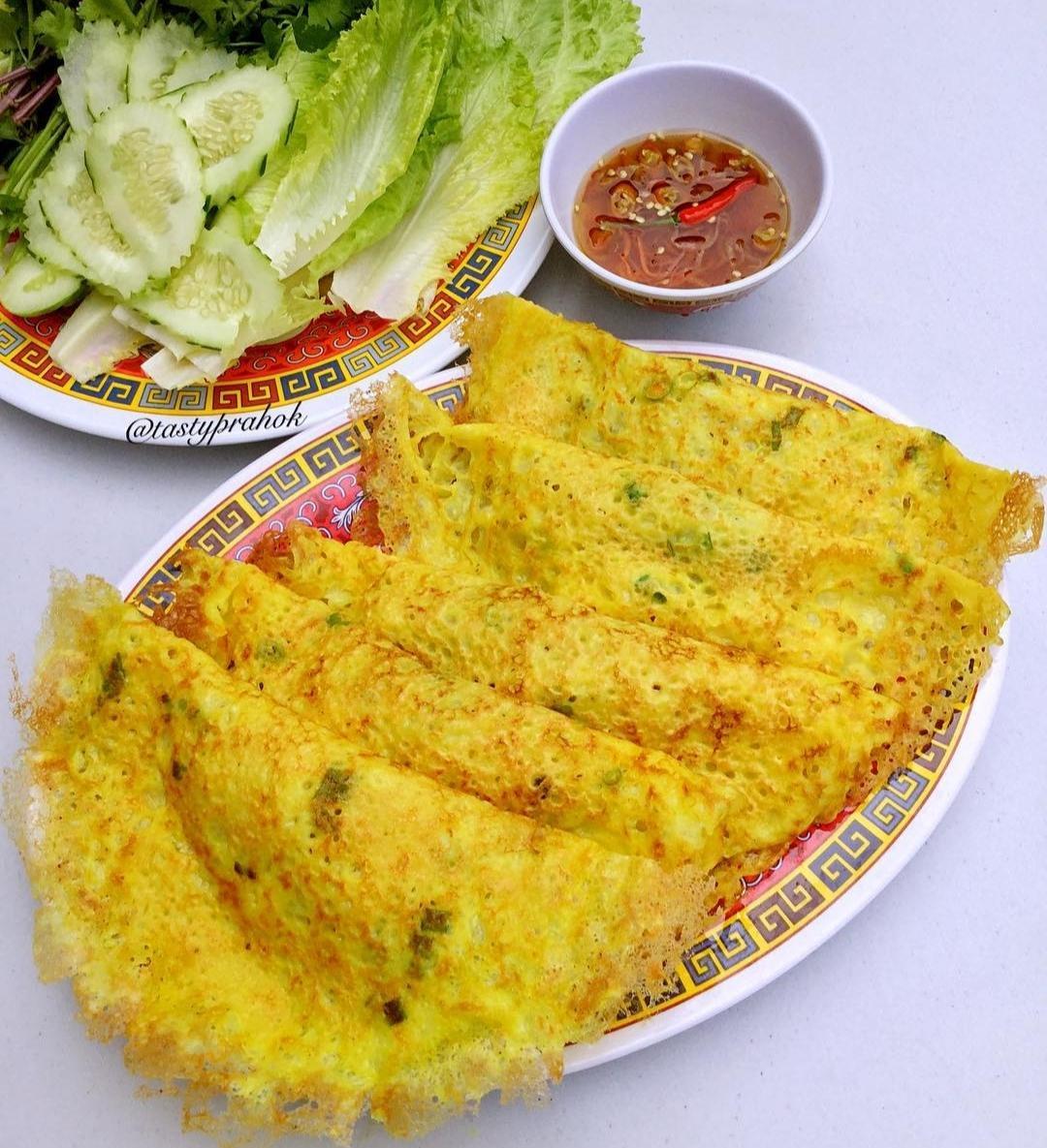 Banh Xeo(薄煎饼)是胡志明市的热门菜,Banh Xeo有两种类型:Banh Xeo Mien Tay(湄公河三角洲的Banh Xeo)和Banh Xeo Mien Trung(越南中部的Banh Xeo),Banh Xeo(越南中部) 湄公河人越来越大,越来越受欢迎。