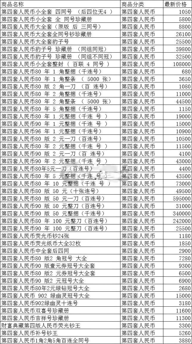 第四套人民币大全套小全套都是多少钱?你知道吗?附全套价格表