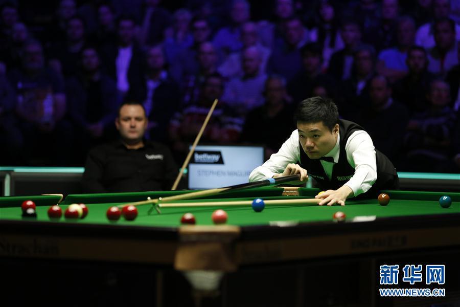 12月8日,马奎尔在决赛中。当日,在英国约克进行的2019斯诺克英国锦标赛决赛中,中国选手丁俊晖以10比6战胜苏格兰选手马奎尔,夺得冠军。新华社发(埃德摄)