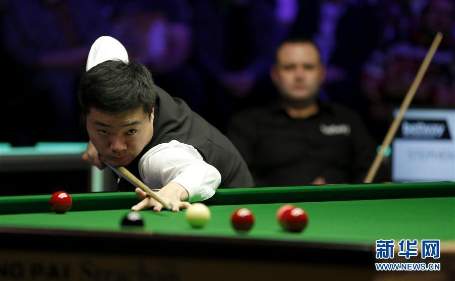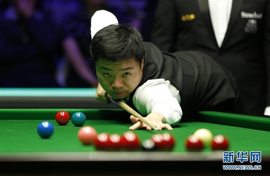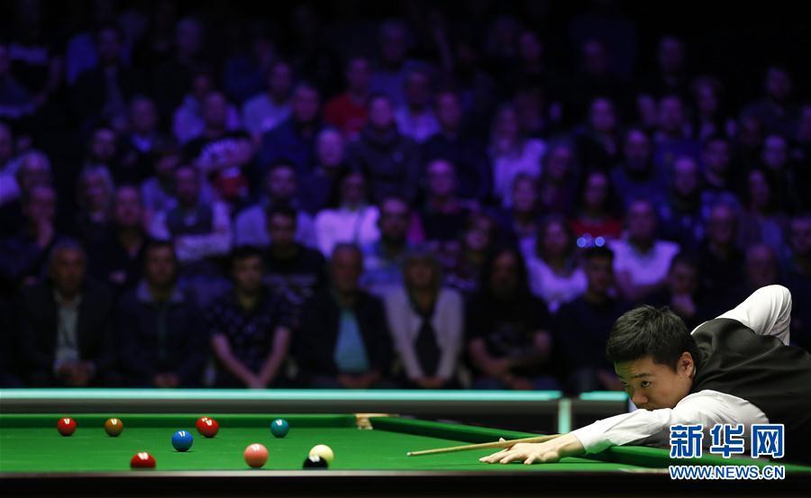 12月8日,丁俊晖在决赛中。当日,在英国约克进行的2019斯诺克英国锦标赛决赛中,中国选手丁俊晖以10比6战胜苏格兰选手马奎尔,夺得冠军。新华社发(埃德摄)