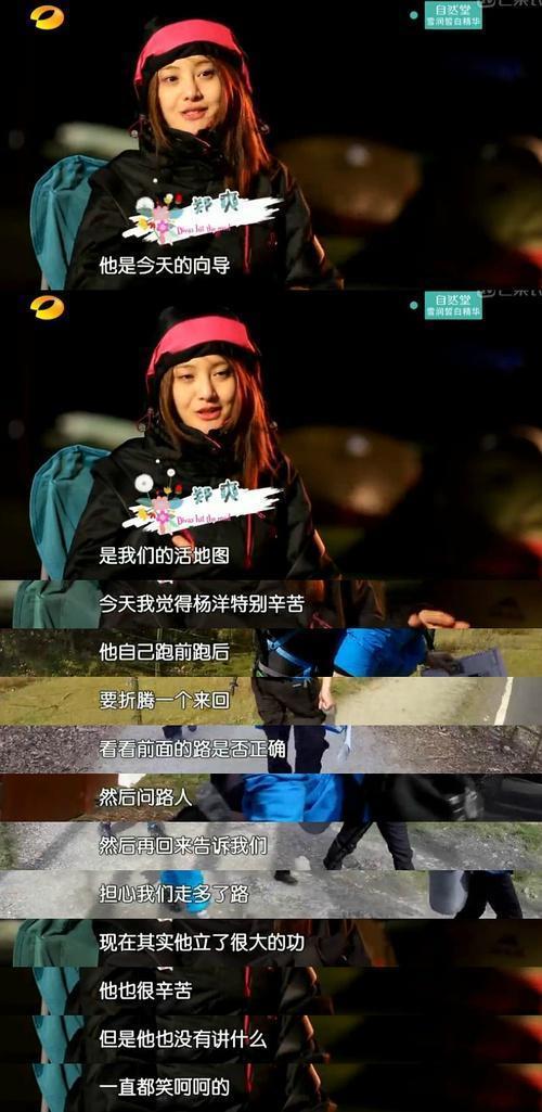 郑爽手受伤杨洋帮她清算伤口,全程他一小我私家领导整个步队找路,让女生走在路的内侧,帮助搬各人的行李从来不说累只说这是男孩子应该做的,被步队忘在原地也本身找归去,并且归去后第一反响是和各人境歉。