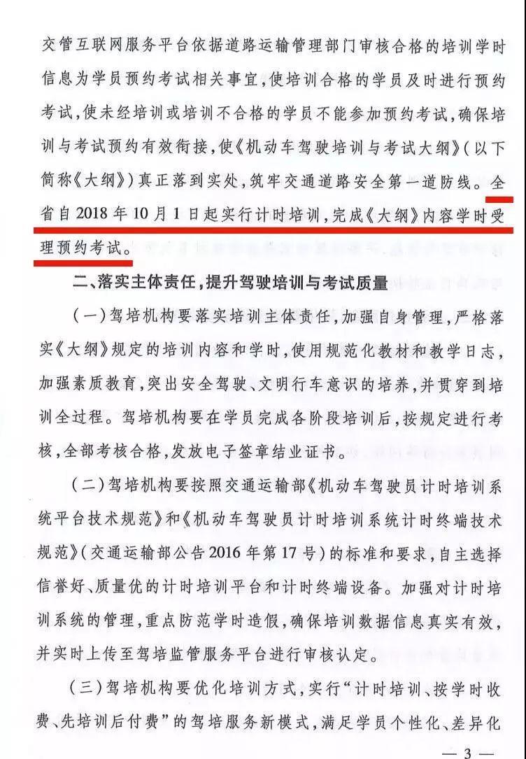 3、河南省自2018年10月1日起施行计时培训,10月1日之后新增学员必须严格执行计时培训模式进行培训。