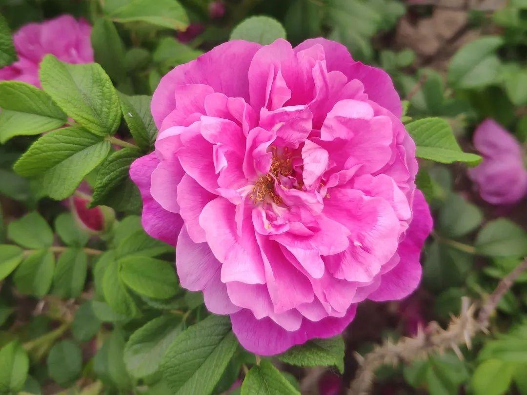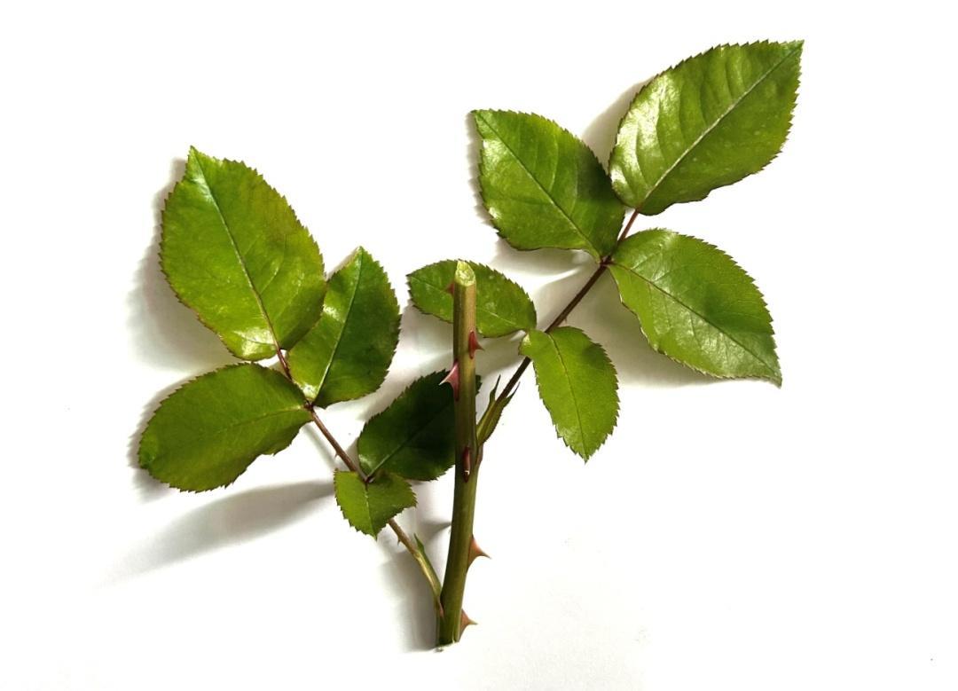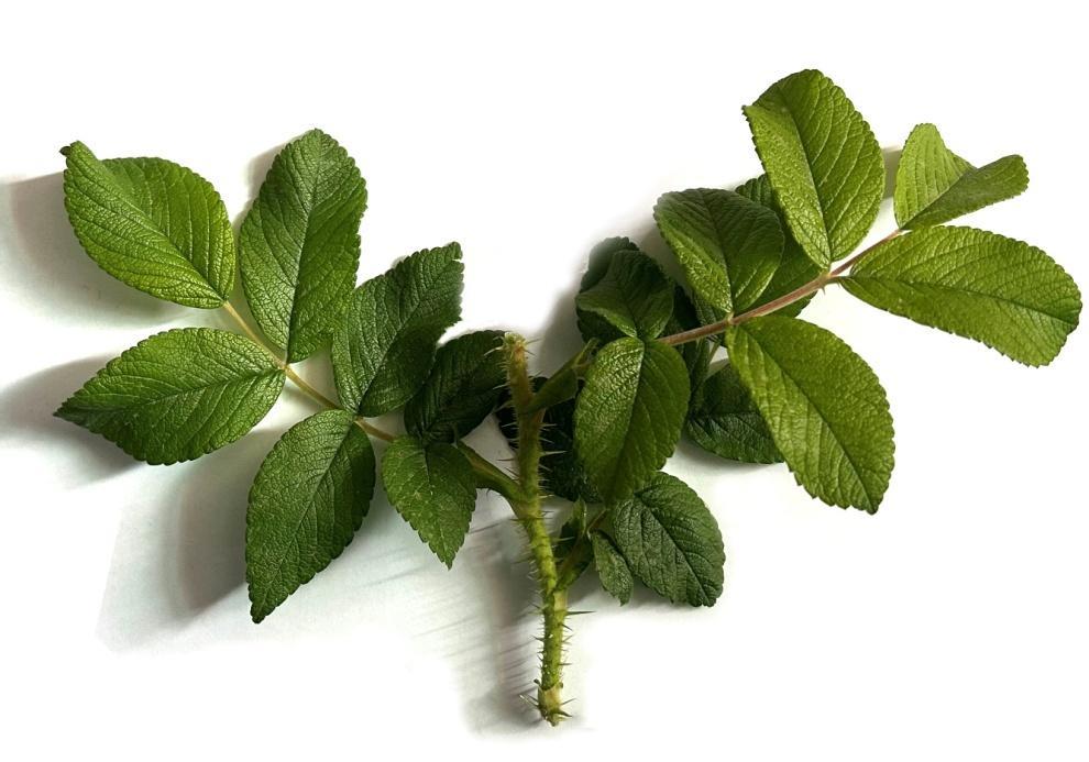 玫瑰叶片皱褶,茎上密生绒毛、针刺和腺毛。