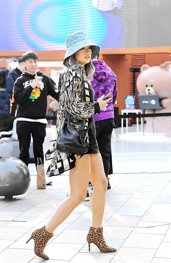 7.豹纹元素的使用,不在多少,在于巧妙。有的时候,只要画龙点睛的那么一点点,就已经足够。这个美女,只穿一双豹纹图案的细高跟短靴。但是,就是这样一双短靴,已经非常到位地表现了美女的时尚和新潮。