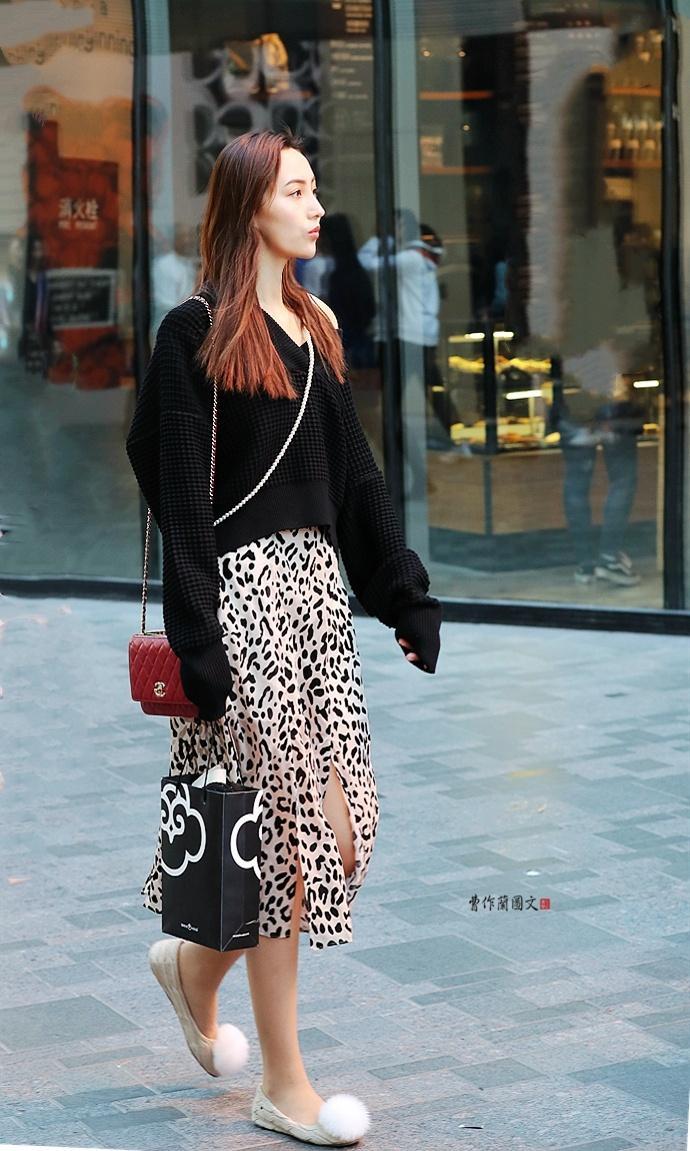 10.在现实生活中,选择豹纹最多的,还是裙装类。无论长裙、短裙,穿着豹纹图案效果都很不错,搭配其它服装也相对容易。这几个美女,都选择了长款的豹纹裙装,上衣搭配或深或浅的单纯颜色的服饰,就会很靠谱,也 ,能更好地表达豹纹的内涵。