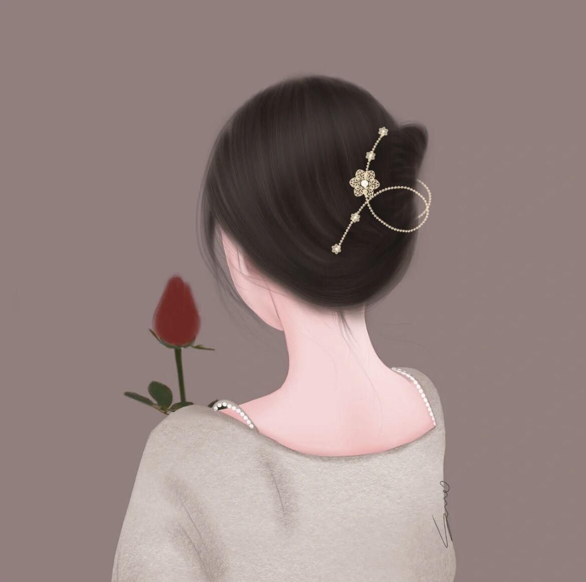 温柔侧面背影头像,唯美手绘气质女生图片,值得收藏