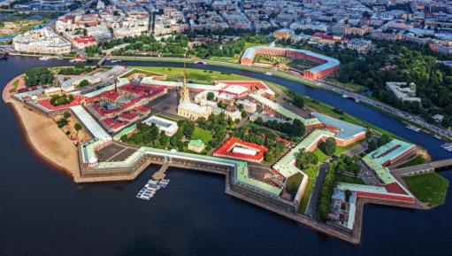 彼得保罗要塞鸟瞰。该堡垒由彼得大帝于1703年在圣彼得堡涅瓦河北岸的兔子岛兴建