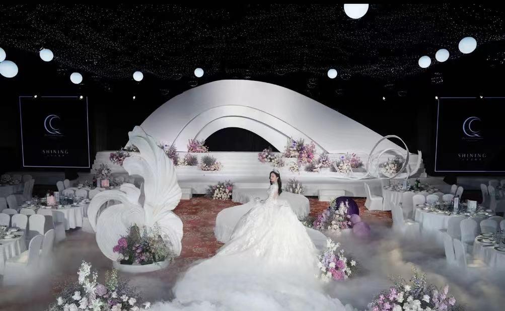 据悉,常怡秋婚礼仪式是在安徽合肥一家豪华酒店举办的,现场摆满了淡雅的鲜花,屋顶上还装饰了不少亮晶晶的小灯,仿佛璀璨又梦幻的星空。