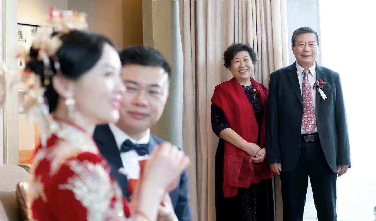当然不管外界怎么看待,常怡秋的幸福之情溢于言表。看见新郎后,她的脸上始终洋溢着灿烂的微笑,新郎凝视她的表情也充满了浓浓的爱意。