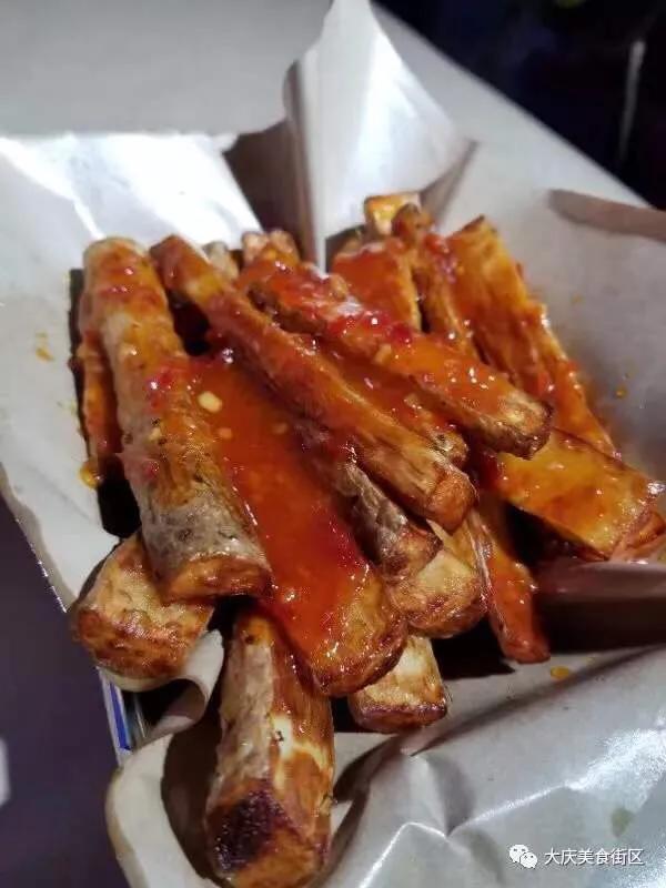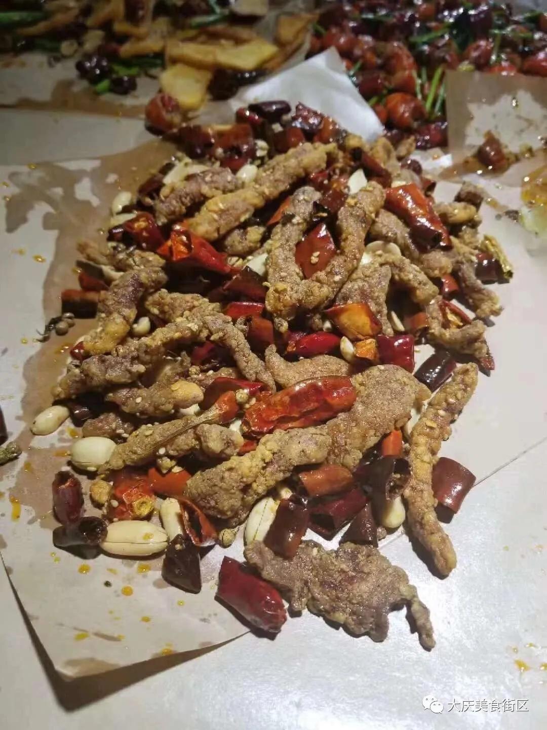 上菜的方式更特别了。大哥直接扛着一个铁锨哟喝着:来,让一让,上菜了。