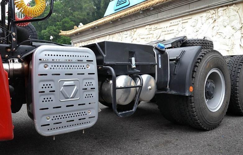 关于轻量化,G7总车质量8.87吨的自重,在重卡行业来说,还是挺轻的。油箱采用的铝合金材质,重量轻又耐用的材质,徐工也在紧跟潮流。