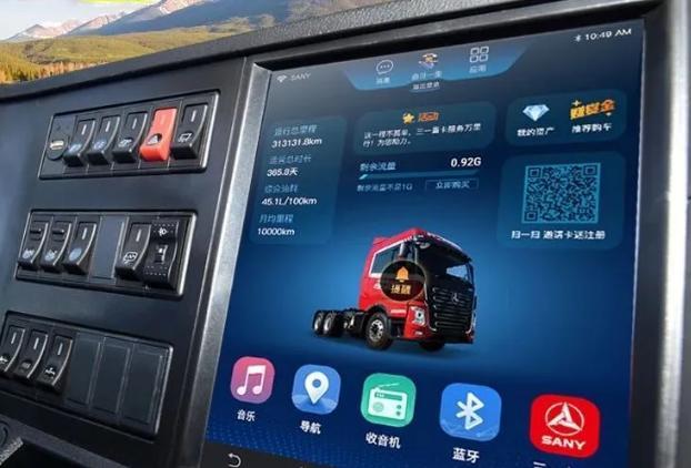 比较惊喜的是,车内12寸超大触摸屏,车载WIFI、卡车导航、影音播放等功能一应俱全,还标配了车联网系统,具备车辆实时定位、车况提醒、驾驶员行为分析、油耗分析、车辆后台数据收集等功能。相对来说是比较科技的,非常人性化的设计,给驾驶员带来了很大的便利。
