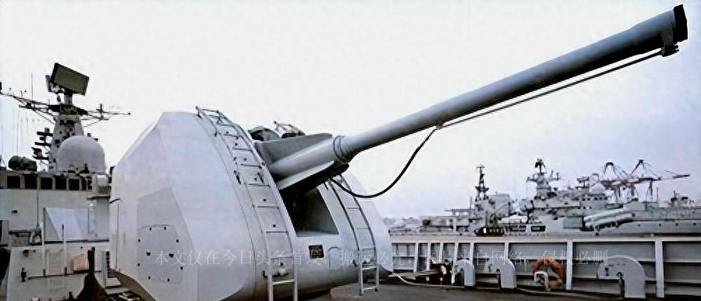 首先,舰首的主炮仍然保留着原先的单管100毫米H/PJ-87式舰炮。虽然在技术水平上远远优于国产当时的79式100毫米双联装舰炮,但由于威力较小、重量较大和可靠性问题,很快被130毫米和76毫米主炮替代。通常情况下,改装时会保留驱护舰的主炮,因为主炮在现代海战中的作用逐渐减小,只要足够使用,就不需要浪费资源重新设计和安装新的主炮。