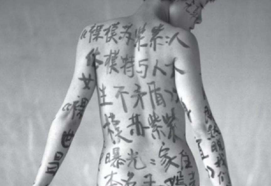 她再次反抗,裸身投入鱼缸,把攻击自己的词汇涂到身上,并拍摄了全身照片。