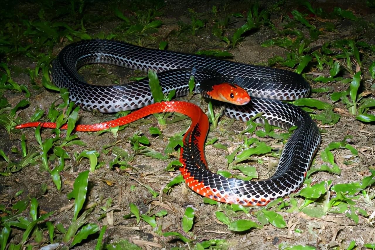 红头红尾的蛇,亚洲地区内相当著名的蛇种,毒性略小于眼镜王蛇