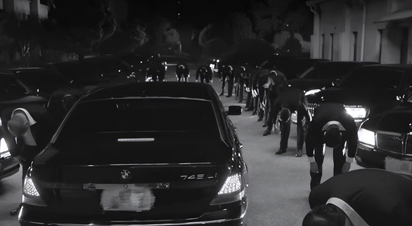 近百辆豪华汽车就停在监狱大门外,期间还有人负责拍照录像、有人准备烟花,其他人则摆排场配合视频拍摄。