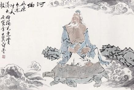 河伯又高声喊道:“我是河伯。你是大禹吗?”后羿一听是河伯,想到黄河的泛滥,顿时怒冲心头,冷笑说:“我就是大禹。”说罢张弓搭箭,不问青红皂白,“嗖”地一箭,正中河伯左眼。河伯大惊,疼得浑身颤抖,一边破口大骂大禹不讲道理,一边去撕那幅水情图。