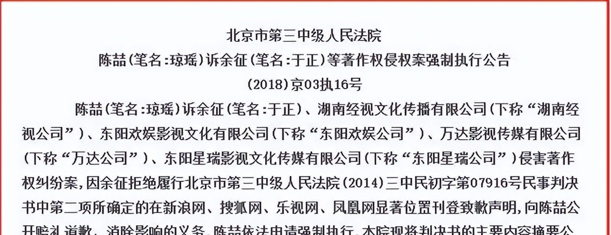 随着事情越闹越大,近两百个作家联合起来抵制于正的抄袭恶行。这股力量就像超级大风暴,把于正卷到了风暴最中心,局面一下子变得超级失控。可这于正,还是死鸭子嘴硬,拼命为自己的抄袭行为找各种理由辩解,就好像在舆论的枪林弹雨和法律的威严大山面前,他还能找到条活路似的。但法律可不是吃素的,证据确凿,他败诉无疑。按照判决,他得给琼瑶道歉赔偿。几百万块钱对他来说可能就跟洒洒水,可那封道歉信却像块巨石,压得他就是不肯低头,坚决不道歉,这更是让大家对他的不满像火山喷发一样,喷薄而出。