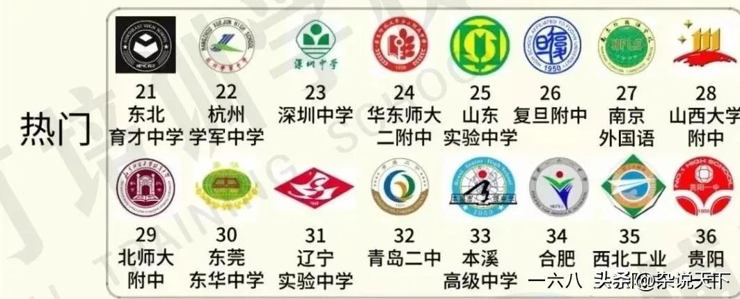 第五档次是“热门”。全国共有16所中学位列其中:东北育才中学、杭州学军中学、深圳中学、华东师大二附中、山东实验中学、复旦附中、南京外国语、山西大学附中、北师大附中、东莞东华中学、辽宁实验中学、青岛二中、本溪高级中学、合肥一六八、西北工业大学附中、贵阳一中。