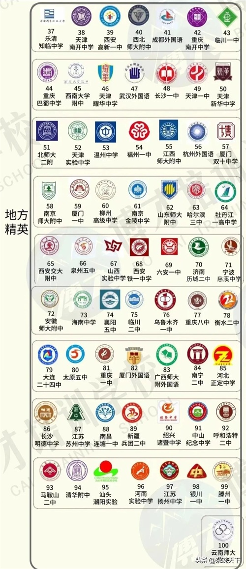 从上述“百强高中”名单来看,上榜最多的地区是浙江,共八所;江苏、山东、天津、广东并列第二,各五所;湖南、湖北、重庆、河北并列第三,各四所;北京、上海、四川、河南、广西各三所。