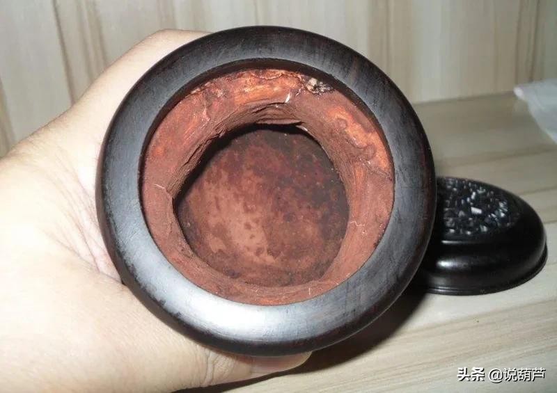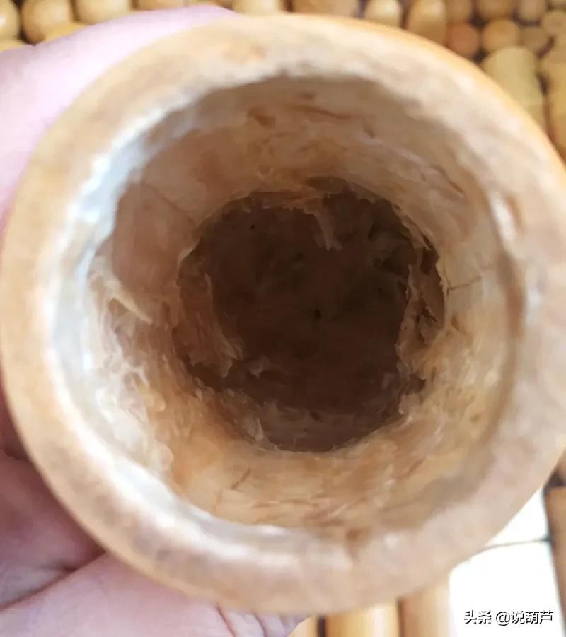 如果将鸣虫葫芦比作一个声效系统,里子在其中能起到吸附杂音、产生共鸣的作用,实际用途不容小觑。但凡事过犹不及,如果葫芦内里子过多、过厚,不仅会吸音影响出音效果,还有可能成为蛀虫繁殖活动的“温床”与三伏天里的“干燥剂”,从而大大提高葫芦被虫蛀或因潮湿导致花皮的风险。所以,鸣虫葫芦在使用前,一定要去除多余的里子。
