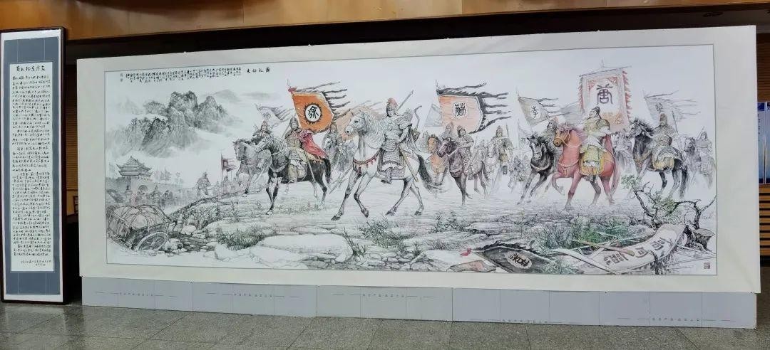 据王中年教授介绍,《薛礼征东》是历史人物画,他先后用了8年时间,画了4个画稿。此次展出的这是最后一个画稿也最完整的一个画稿。《薛礼征东》在东北亚地区,尤其是在辽宁,是一个重大的历史题材,可以说是家喻户晓人人皆知的历史故事。其画面的展示,不仅是构图的需要,更重要的是历史史实的需要。