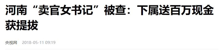 《央视网》河南“卖官女书记”被查:下属送百万现金被提拔
