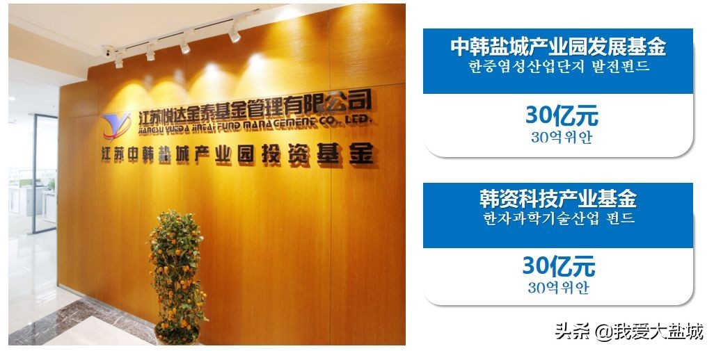 聚焦汽车整车、关键零部件、半导体、智能装备、健康美容领域,新组建30亿元中韩盐城产业园发展基金、30亿元韩资科技产业基金,期待深化与世界500强、国内100强、行业前20强企业的合作,打造国际一流、全国知名的韩资密集区。