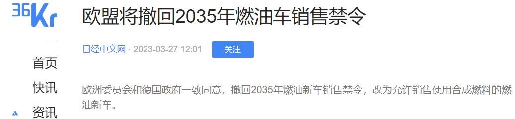 苹果宣布放弃造车,福特和通用大幅缩减电车研发投入,欧盟也撤销了《2035年燃油车禁售令》