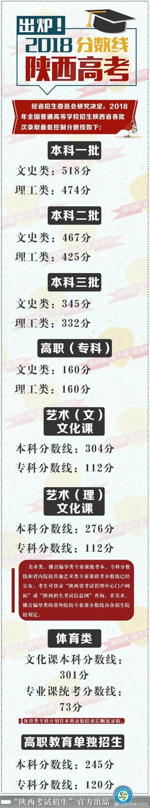 2018年陕西高考录取分数线重磅公布!文史一本518;理工一本474