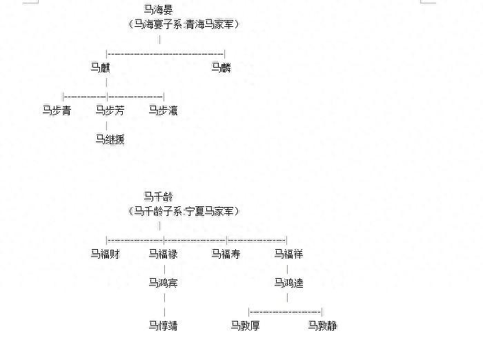 马家军支系由甘肃划分出青海、宁夏,独立置省而来 ,青马主要由马麒、马步青、马步芳、马继援为代表的势力组成,宁马由马福祥、马鸿宾、马鸿逵、马敦静为代表的势力组成,其先后投靠北洋政府、冯玉祥和国民政府蒋介石,成为民国一股不小的军事势力。