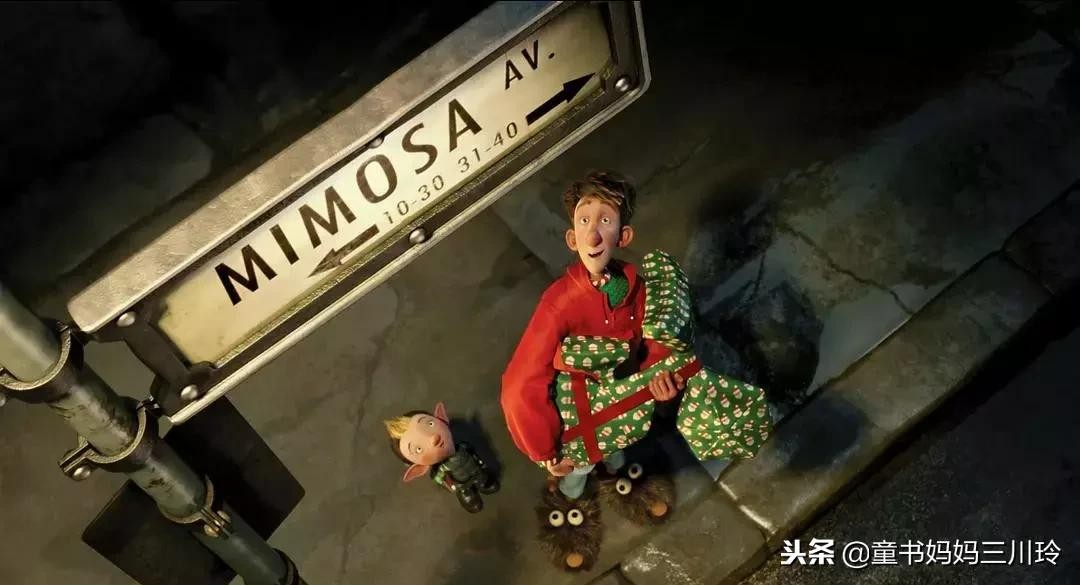 例如最后一幕:小姑娘推开屋门的时候,亚瑟还未来及离去:大雪糊满他的脸,风把他的连帽衫吹得鼓鼓的——他有了白胡子和大肚子!这不就是圣诞老人形象吗?这个细节让人感动地想流泪!