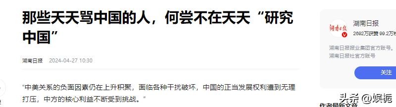 湖南日报所发布《那些天天骂中国的人,何尝不在天天“研究中国”》